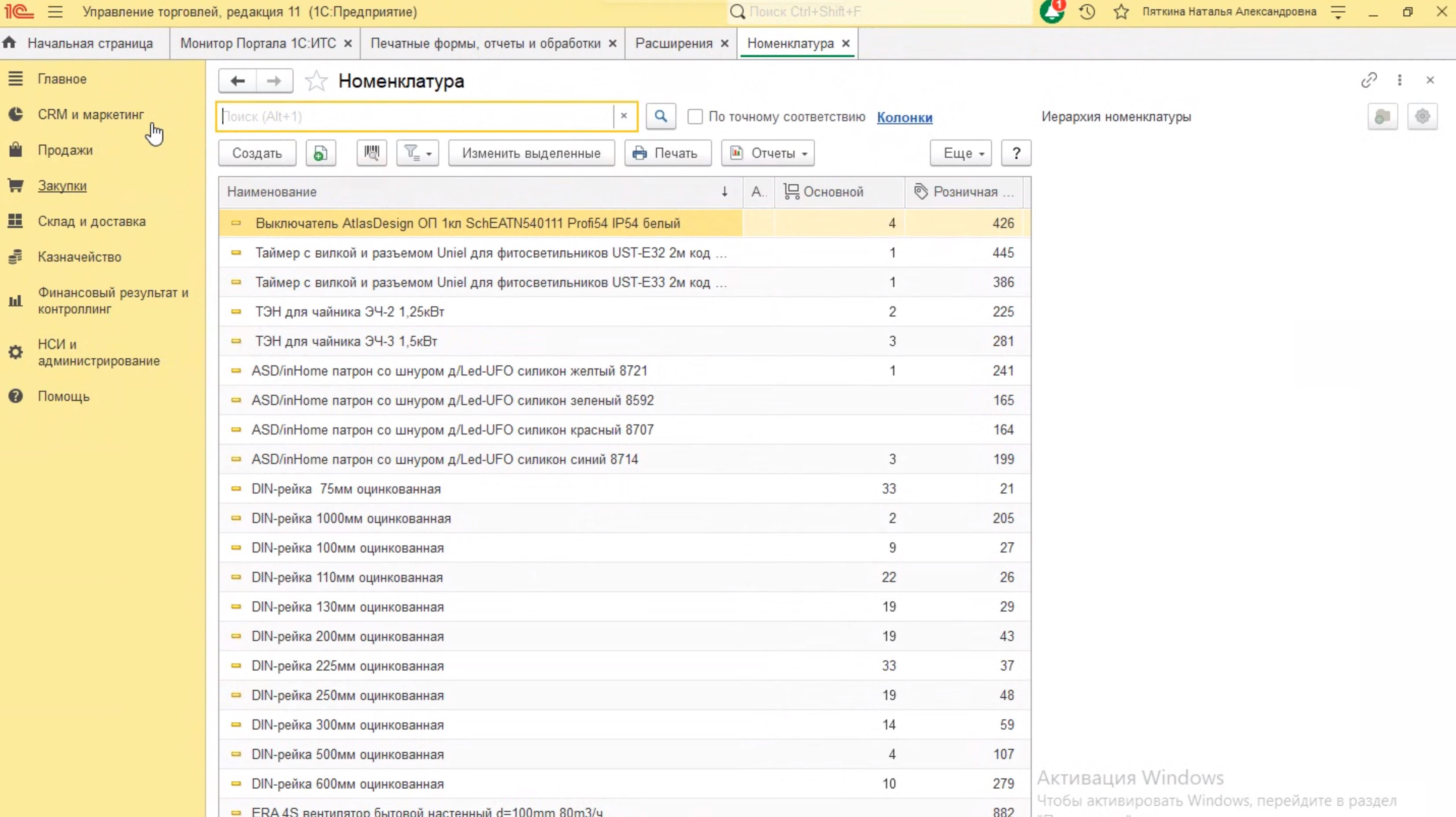 На рисунке ниже представлена форма списка номенклатуры для УТ11.5.