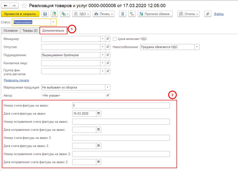 1. Автоматическое заполнение авансовых счетов при выводе печатной формы на экран