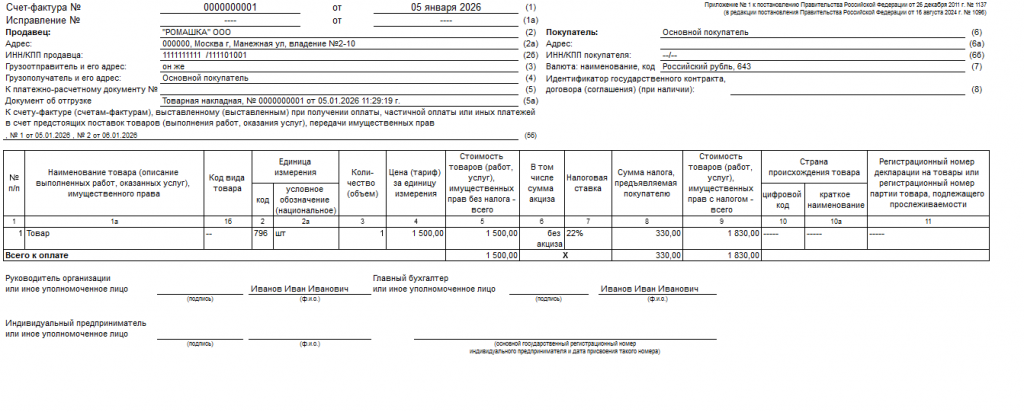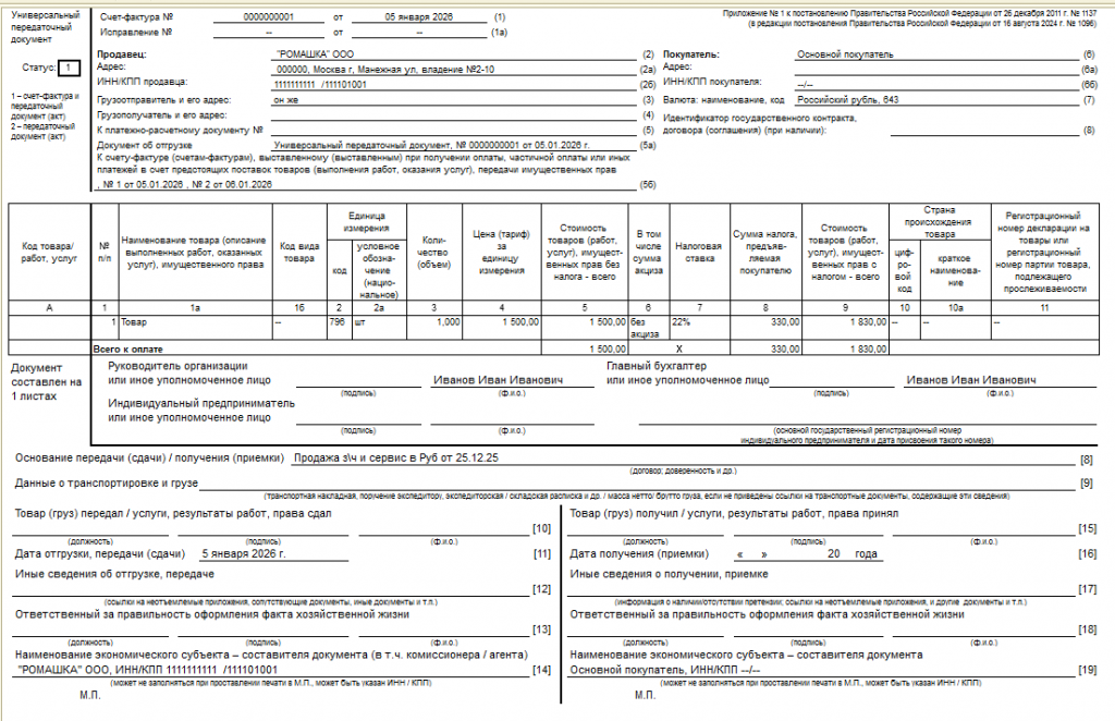 Данное расширение позволяет добавлять авансовые платежи в счет-фактуру выданный и формировать новые печатные формы со строкой 5б.