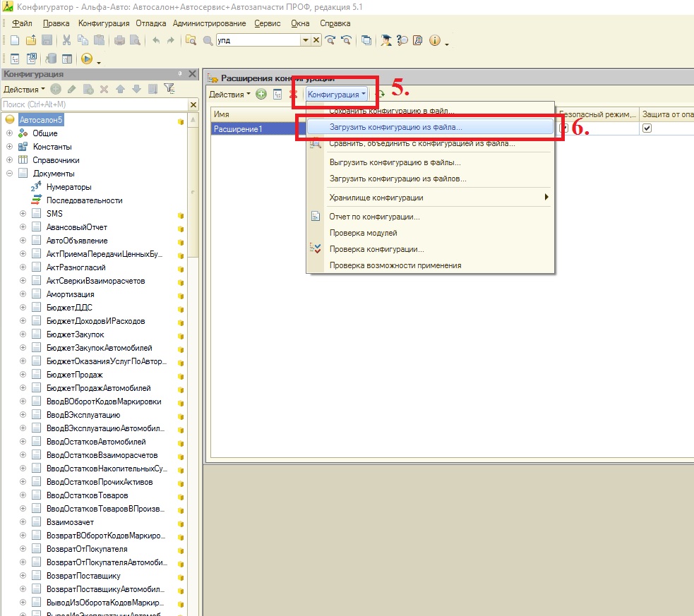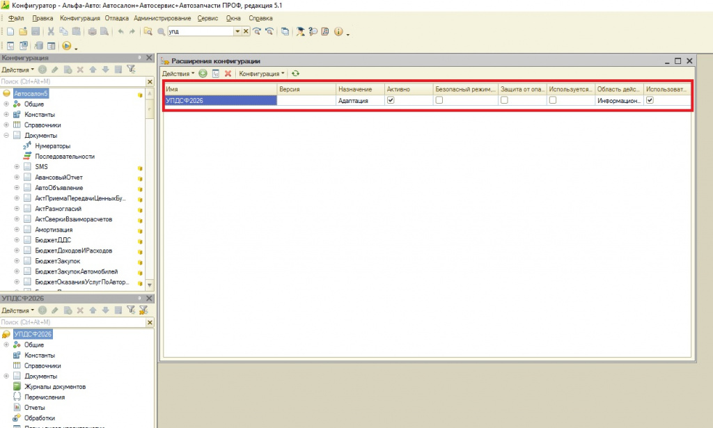 Протестировано на конфигурации Альфа-Авто: Автосалон+Автосервис+Автозапчасти ПРОФ, редакция 5.1 (5.1.48.03).