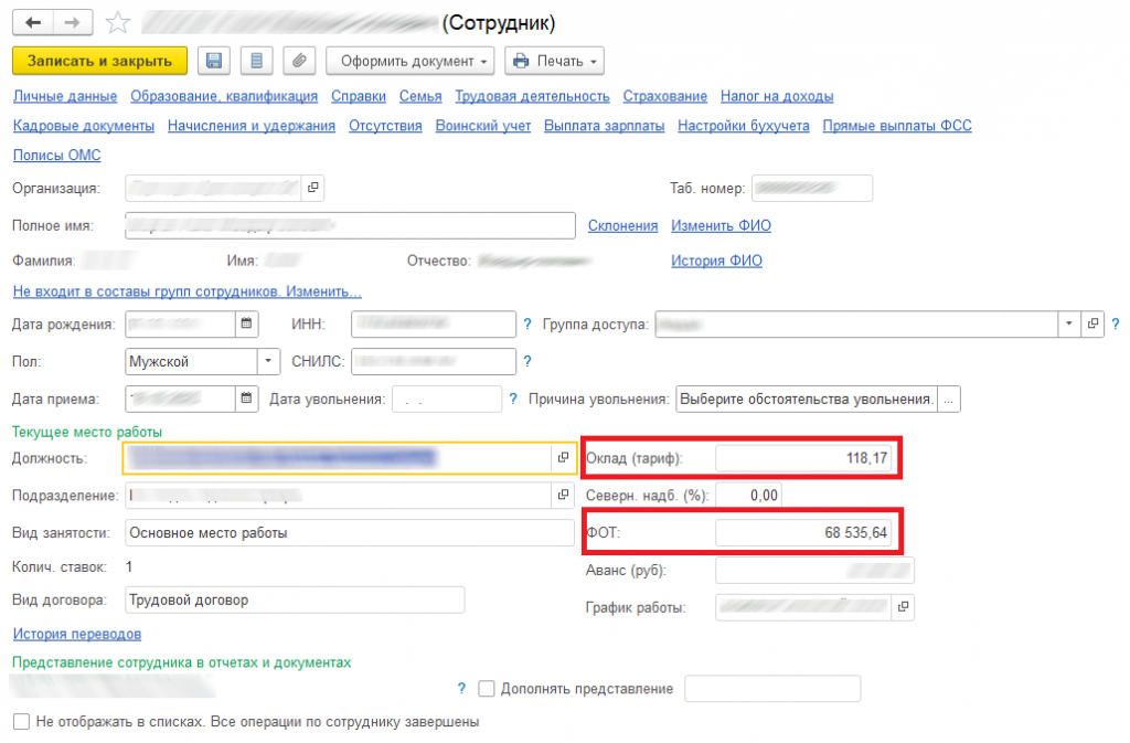 - ФОТ сотрудника - значение, которое соответствует значению ФОТ в карточке сотрудника;