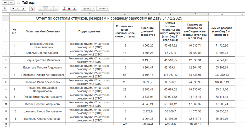 резерв отпуска