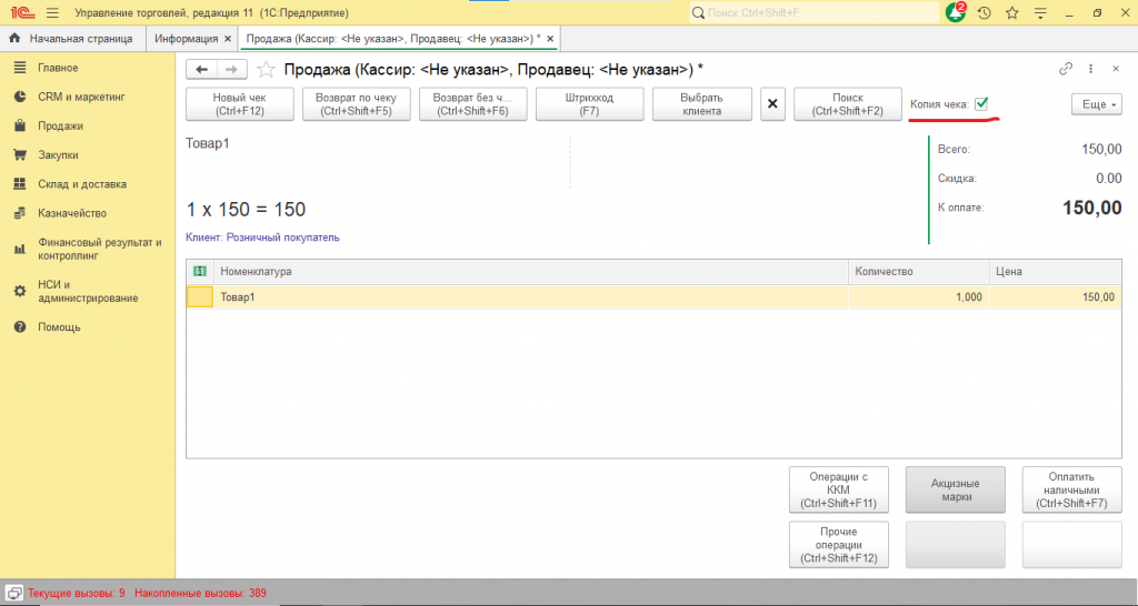 Печать копии чека в 1С: УТ 11.5