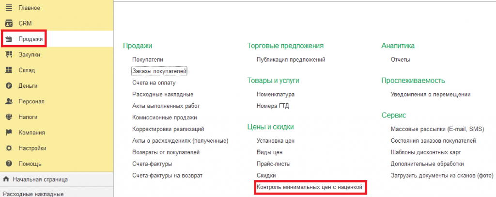 УНФ3.0 Управление нашей фирмой Цены Минимальные цены Контроль цен Заказ покупателя Заказ клиента Реализация товаров услуг Расходная накладная УТ11.5 Управление торговлей