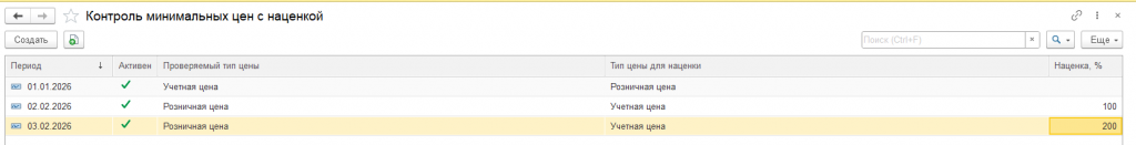 • Период - дата начала действия наценки;