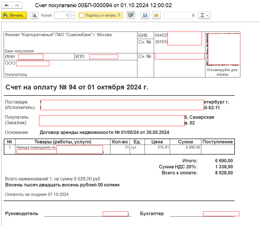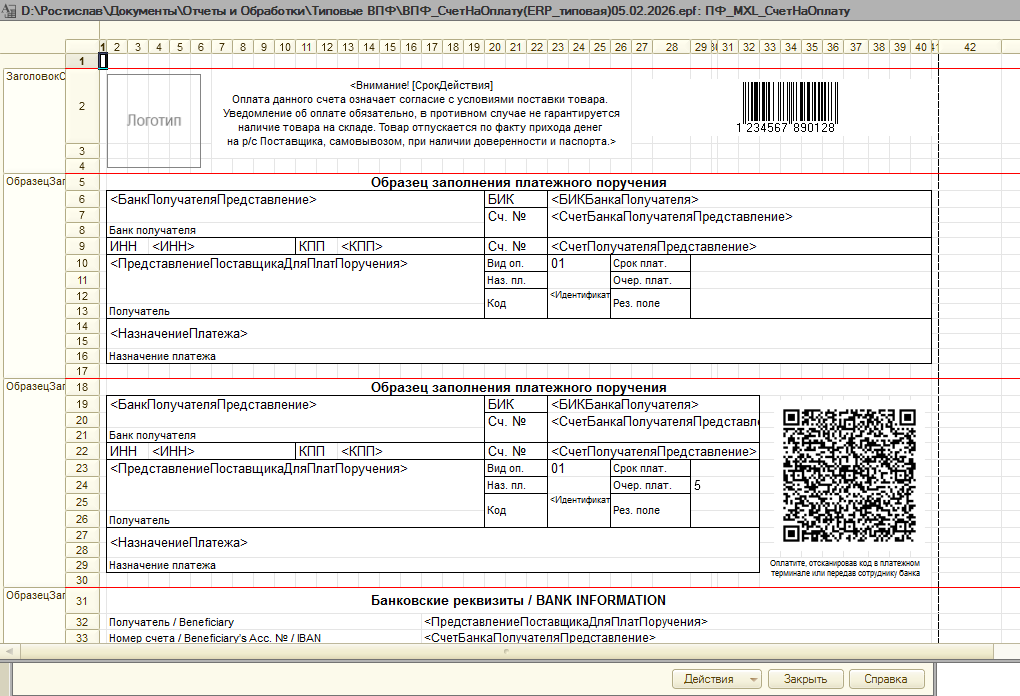 Внешняя печатная форма "Счет на оплату клиенту" для ERP, УТ 11 и КА 2.0 из документа "Счет на оплату клиенту".