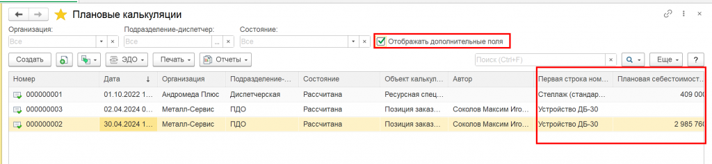 В ERP есть документы "Плановые калькуляции". Потребовалась выполнить доработку, чтобы в списке этих документов отображались еще две колонки: Номенклатура и Стоимость (берётся из плановой себестоимости продукции).