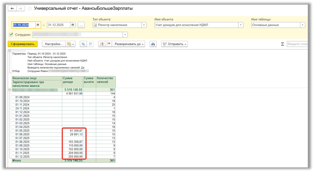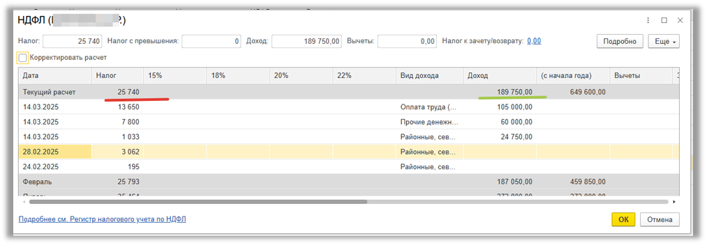 Т.е. для учета налогооблагаемого дохода программа использовала ошибочную сумму: