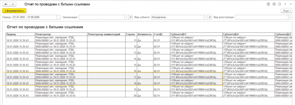 Отчет нужен для поиска битых ссылок. Как ни странно, задача сложнее, чем может показаться на первый взгляд. Пришлось оптимизировать запросы, потому что если делать ее в лоб, то она будет падать даже на самых небольших базах.