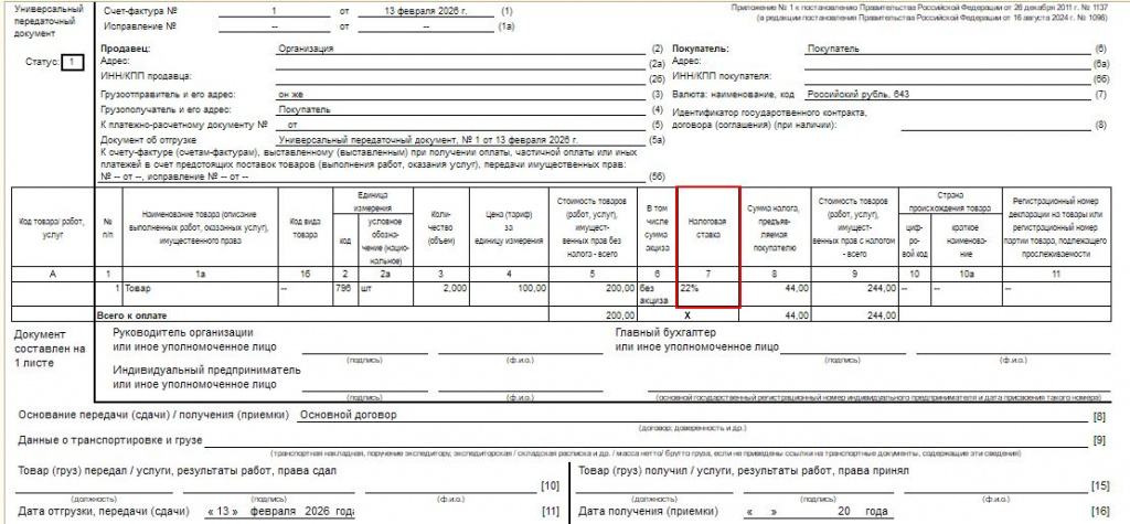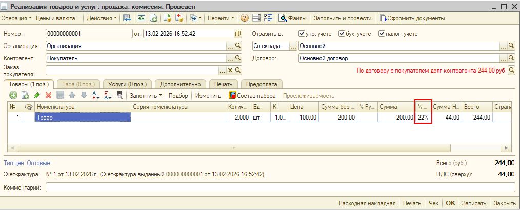 1. Ставка НДС будет 22% добавлена везде, где это необходимо (в печатных формах и документах)