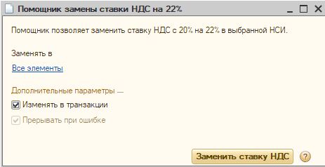 Также доработана обработка по автоматической замене ставки 20% на 22% в номенклатуре: