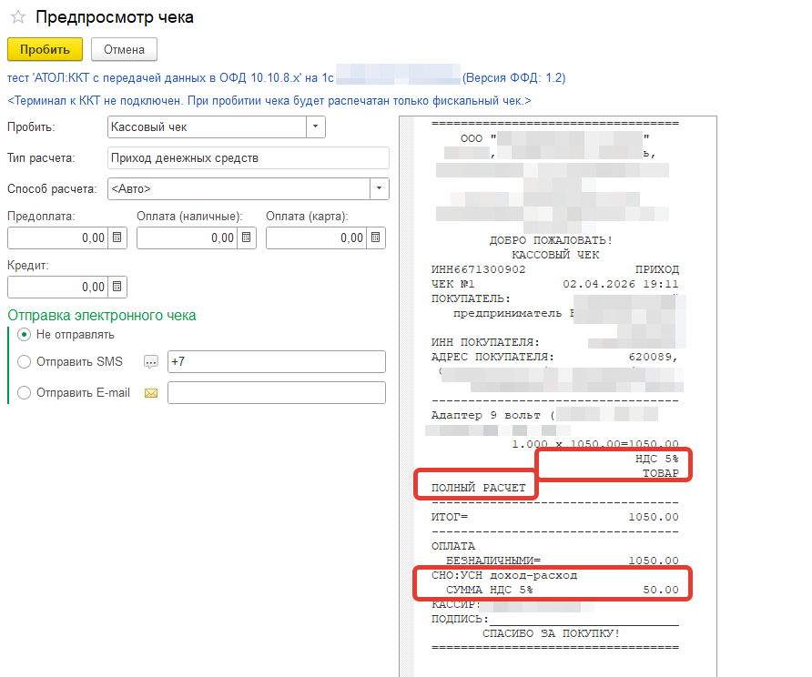 С использованием этого решения чек полноценно корректный, полностью соответствует требованиям налогового органа, пример чека на скриншоте.