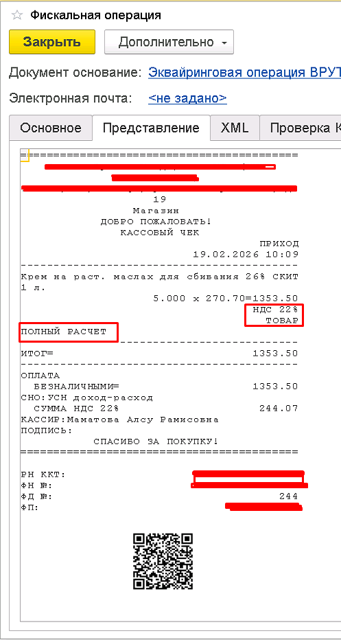 Расширение корректирует формирование фискальных чеков, пробитых из Приходного кассового ордера и эквайринговой операции, созданных на основании документа Реализация товаров и услуг.