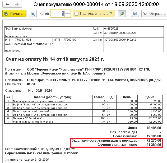 Счет на оплату (с задолженностью):