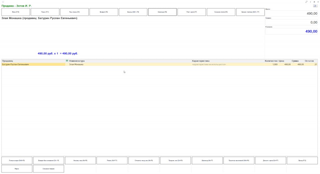 1. Откройте РМК (Рабочее место кассира)