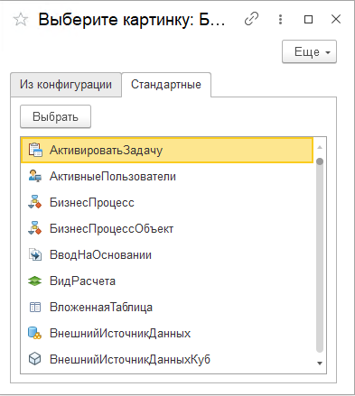 Форма выбора картинки из библиотеки картинок в режиме предприятия, аналогичная форме в конфигураторе.