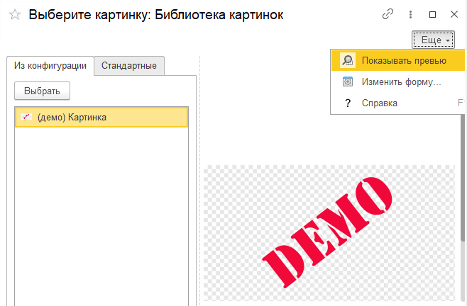 Выбор картинки из библиотеки картинок в режиме 1С:Предприятие
