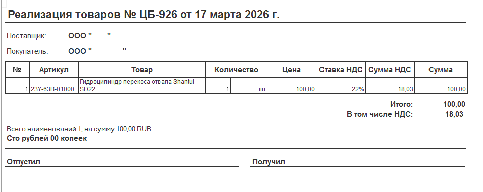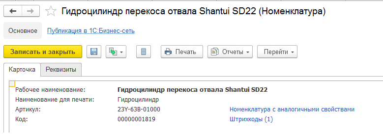 В табличной части наименования товара указывается рабочее наименование, а не наименование для печати для следующих документов: расходная накладная для реализации товаров, заказ клиента, заказ на перемещение, накладная на перемещение.