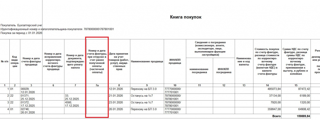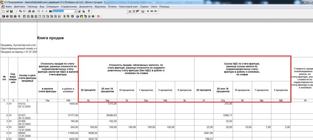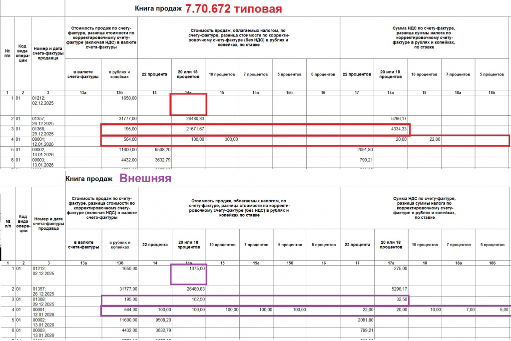 2) в Книге Продаж не учтены варианты выставления СФ 20% в 2026 году (корректировки отгрузок 2025 и т.п.)