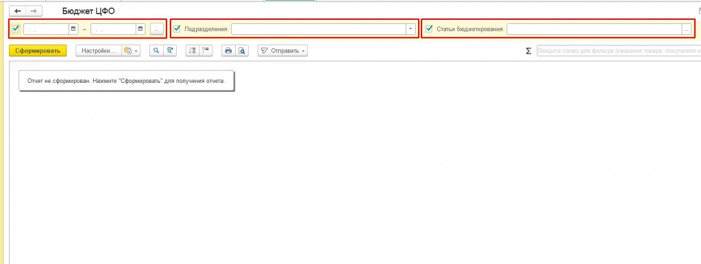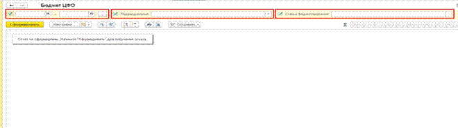 - Откройте отчёт «Бюджет ЦФО», выберите параметры, нажмите «Сформировать».