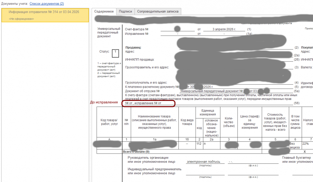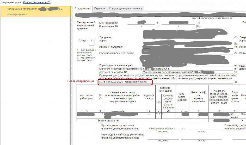 Строка 5б в электронной версии УПД