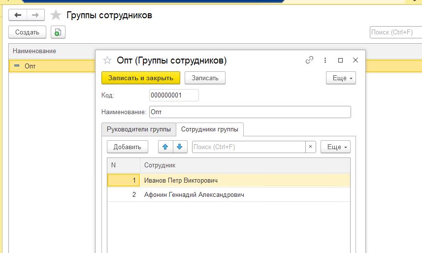 Сотрудников можно объединять в группы с указанием их руководителей.
