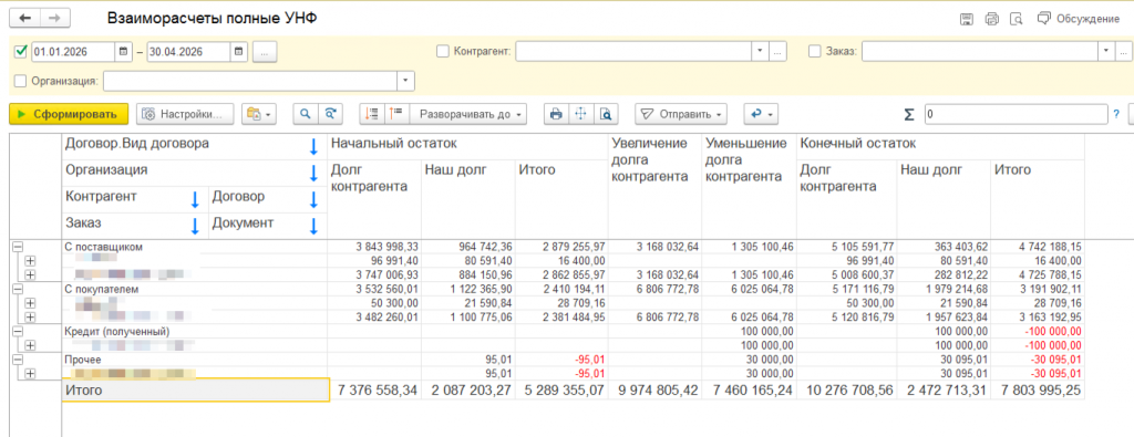 Единый отчёт по полным взаиморасчётам, включающий сведения о расчётах с контрагентами (покупателями и поставщиками), прочих операциях и кредитов/займов.