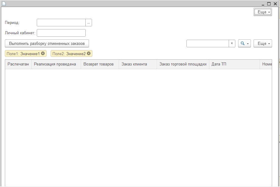 Форма для автоматического разбора возвратных заказов с Маркетплейсом