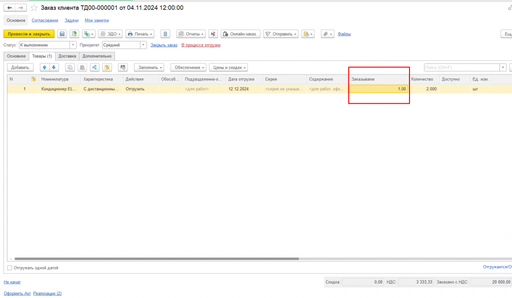 В документе "Заказ клиента" в табличную часть товаров добавлена колонка "Заказываем", это количество которого сейчас нет в наличии и нужно заказать у поставщика. При расчете вознаграждения от продаж возможно будет указать разные коэффициенты для заказываемого у поставщика (колонка "заказываем") и заказанного клиентом (колонка "количество") товара, т.е на заказываемое количество 1 шт. установить один коэффициент, а на оставшееся количество 1 шт. установить другой коэффициент.