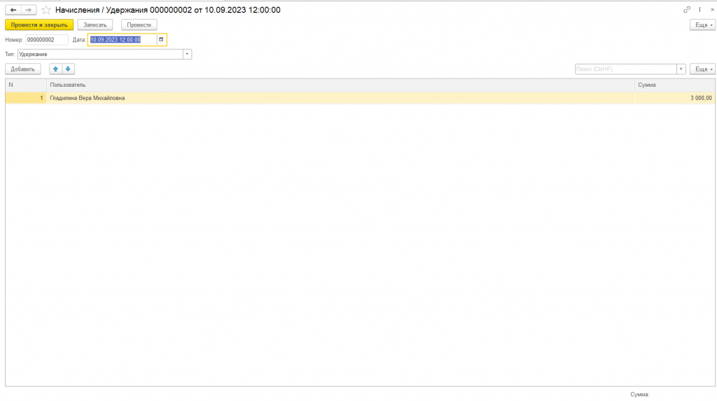 В этом документе устанавливается дополнительные начисления (премии, бонусы) или удержания в зависимости от типа.