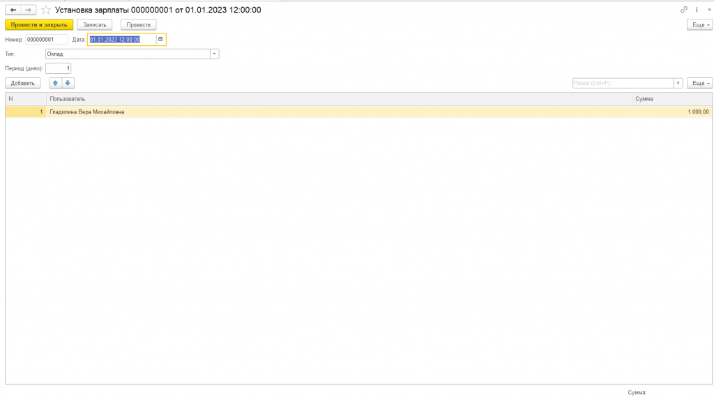 В этом документе устанавливается оклад или минимальная зарплата за выбранный период в днях сотрудникам в зависимости от типа.