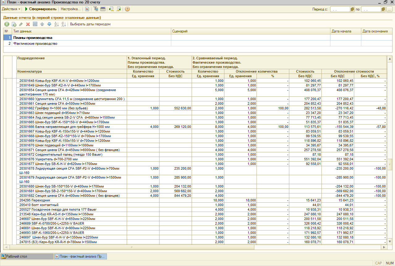 В колонках стоимость фактическая и эталонная выводится БЕЗ НДС, и отклонение стоимости высчитывается по стоимости без НДС.