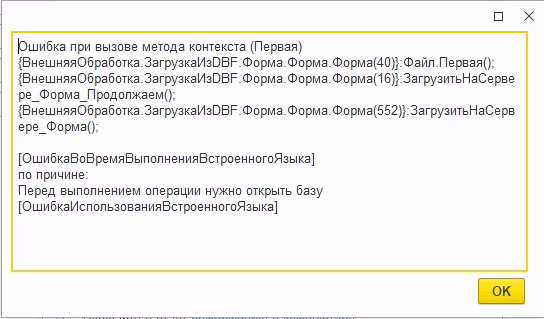Приобрели обработку, но при попытке обработать dbf файл выходит ошибка