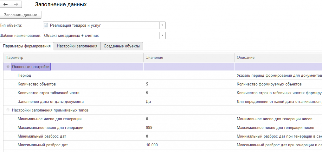 - Обработка позволяет быстро наполнить какой-либо объект метаданных. Со случайными