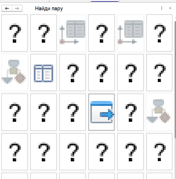 - Игра, в которой надо искать одинаковые картинки. Картинки используются из стандартной библиотеки картинок.