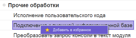 Добавлен раздел обработок, работающих на БСП. Доступен только если в конфигурации присутствует БСП.
