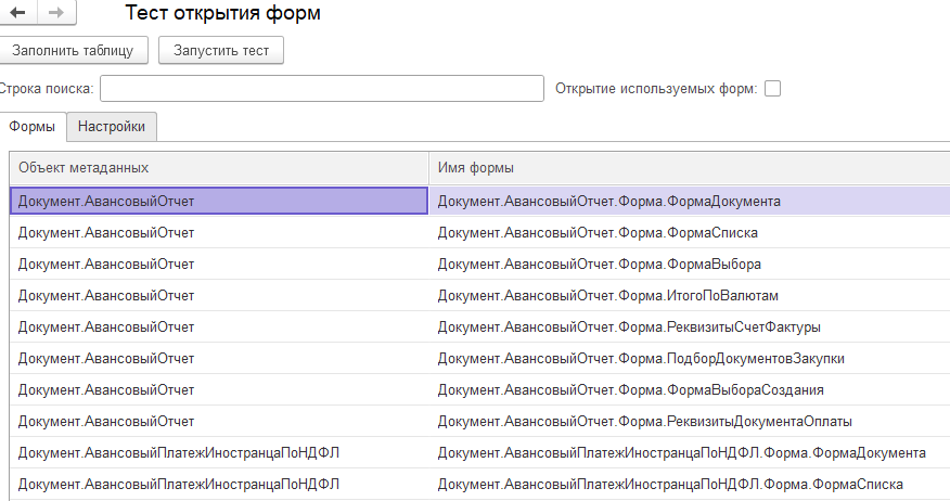 - Обработка последовательно открывает все формы объектов метаданных, для проверки возможных программных ошибок.