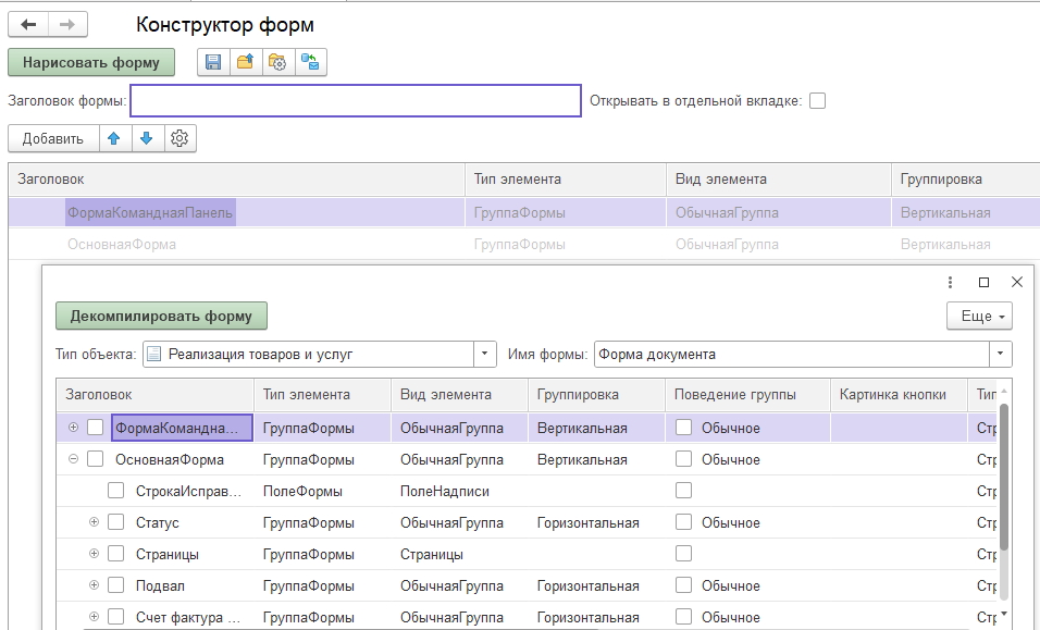 - Добавлена декомпиляция форм конфигурации. Можно декомпилировать любую форму объекта метаданных из конфигурации.