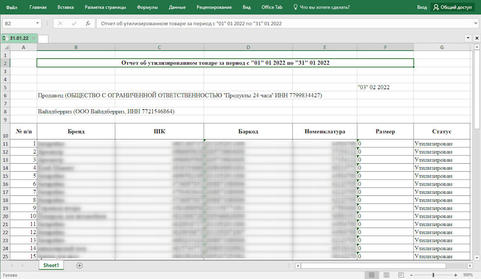 Обратите внимание: WildBerries рассылает файл отчета ХХ.ХХ.ХХ.xlsx в заблокированном варианте, либо ином отличном от Excel формате. Для того чтобы его корректно считала платформа 1С, откройте его в офисном приложении и сохраните под новым именем. При загрузке указывайте новый сохраненный файл.