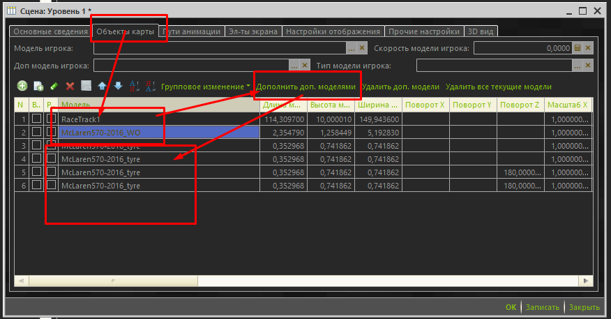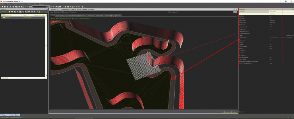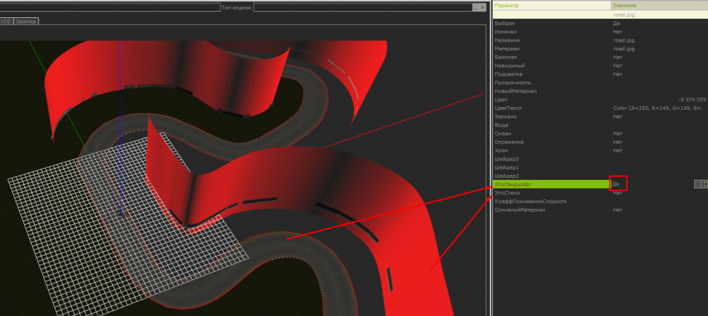 Можно назначить различные материалы для дороги или зданий, чтобы было, например, отражение в дорожном покрытии или некоторые металлические объекты окружения имели характерный отблеск, но для трассы главное, чтобы по ней ехал наш автомобиль, и не заезжал «не туда», например, не проезжал сквозь стены домов или отбойников. Для этого в настройках материалов предусмотрено два вида столкновений (коллайдеров) — «Это ландшафт» и «Это стена». По ландшафту мы можем перемещаться, а сквозь стену проезжать нельзя — будет столкновение или, при касании, потеря скорости.