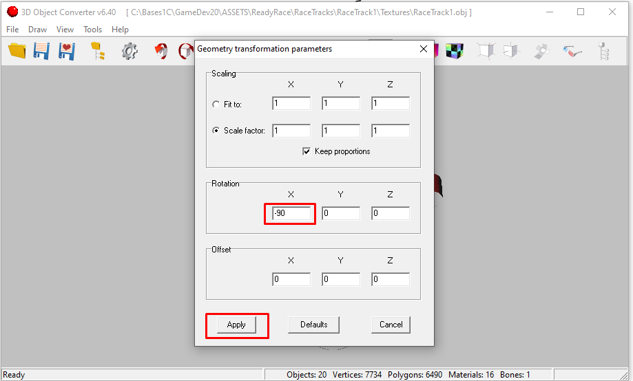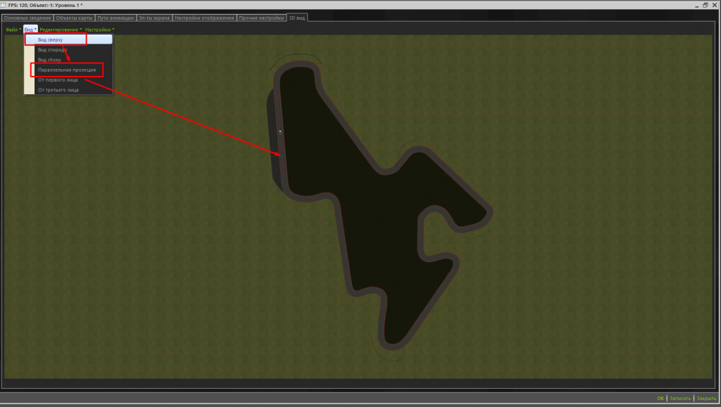 Также необходимо трансформировать наш объект так, чтобы вид сверху соответствовал виду сверху, т.е. показывал план трассы.