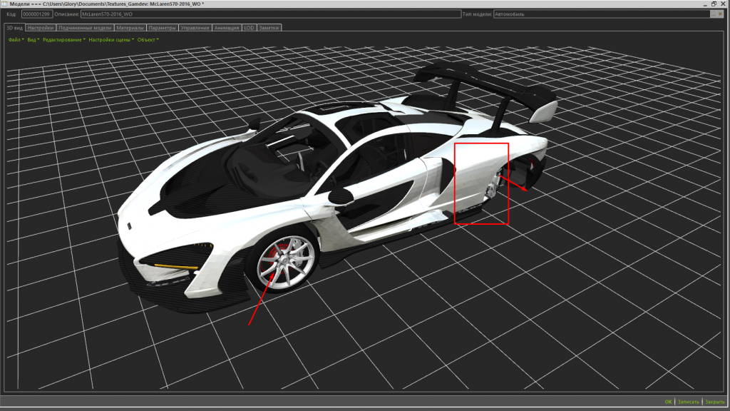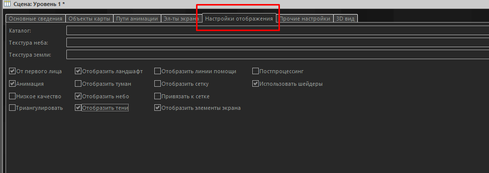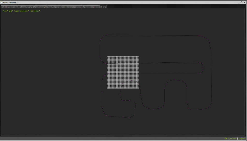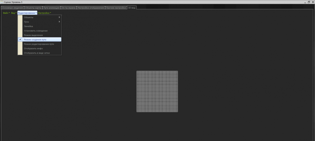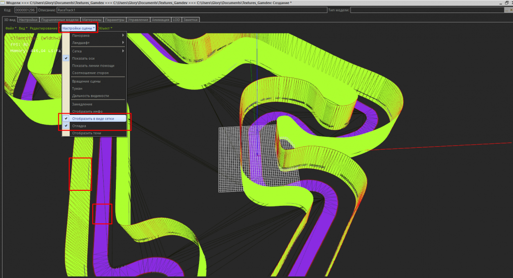 Чтобы просмотреть, как применились наши коллайдеры, необходимо в меню «Настройки сцены» включить опции «Отладка» и «Отобразить в виде сетки».