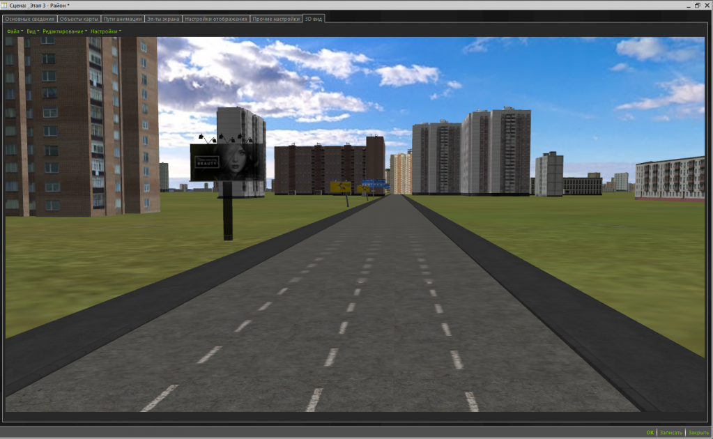 Второй способ — посложнее. Необходимо создать ландшафт, а затем наполнить его сначала дорожным покрытием, а затем объектами окружения (дома, деревья, дорожные объекты, движущиеся объекты)