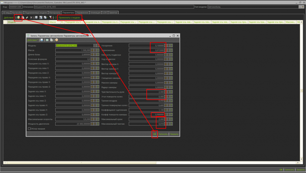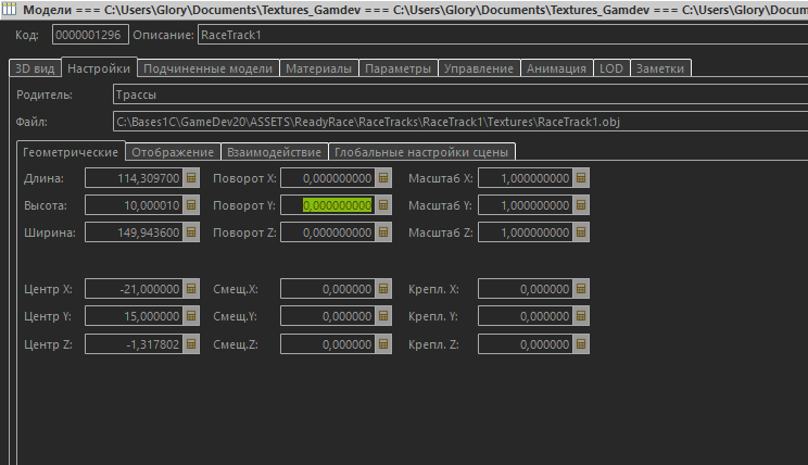 Абсолютно все геометрические параметры модификации объекта доступны на закладке «Настройки»