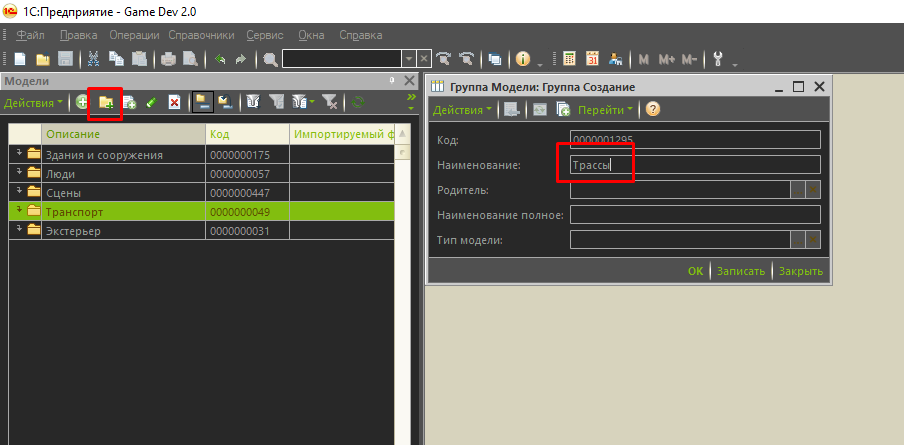 Теперь заходим в нашу программу, и с левой стороны в справочнике моделей создаем группу трехмерных моделей и называем ее Трассы.