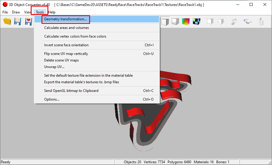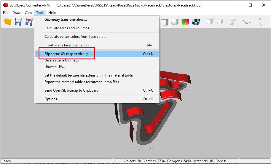 Находим в Интернете готовую трассу. С помощью программы конвертера (например, 3D Object Converter http://3doc.i3dconverter.com/) переворачиваем координаты текстур, для корректного отображения.