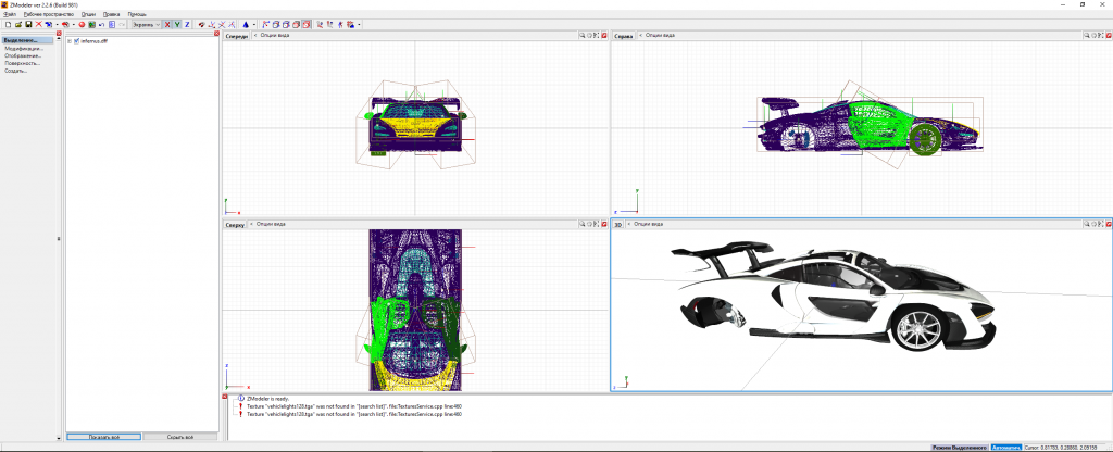Импорт в программу возможен из форматов файлов *.X и *.OBJ.