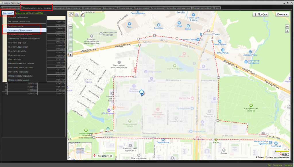 Третий способ подойдет тем, кто хочет визуализировать реальную местность. Просто выделяете область на карте, а затем с помощью сервиса закачиваете все объекты, попавшие в данную область, причем их категории можно включать и отключать для ускорения производительности. Все объекты зданий создаются сразу с текстурами в зависимости от типа здания и его текстовых описаний. Также доступен импорт объектов карты из формата *.OSM