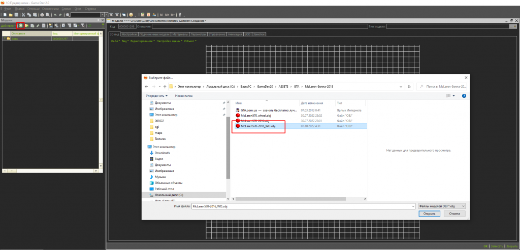 В случае с «голой конфигурацией» – при открытии справочника моделей появится окно с размерной сеткой в 3-х мерном виде.