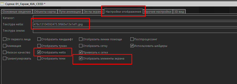 В настройках изображения выберем, чтобы окружение сцены (для зеркального отражения) было похоже на гараж и отобразим наши элементы меню.